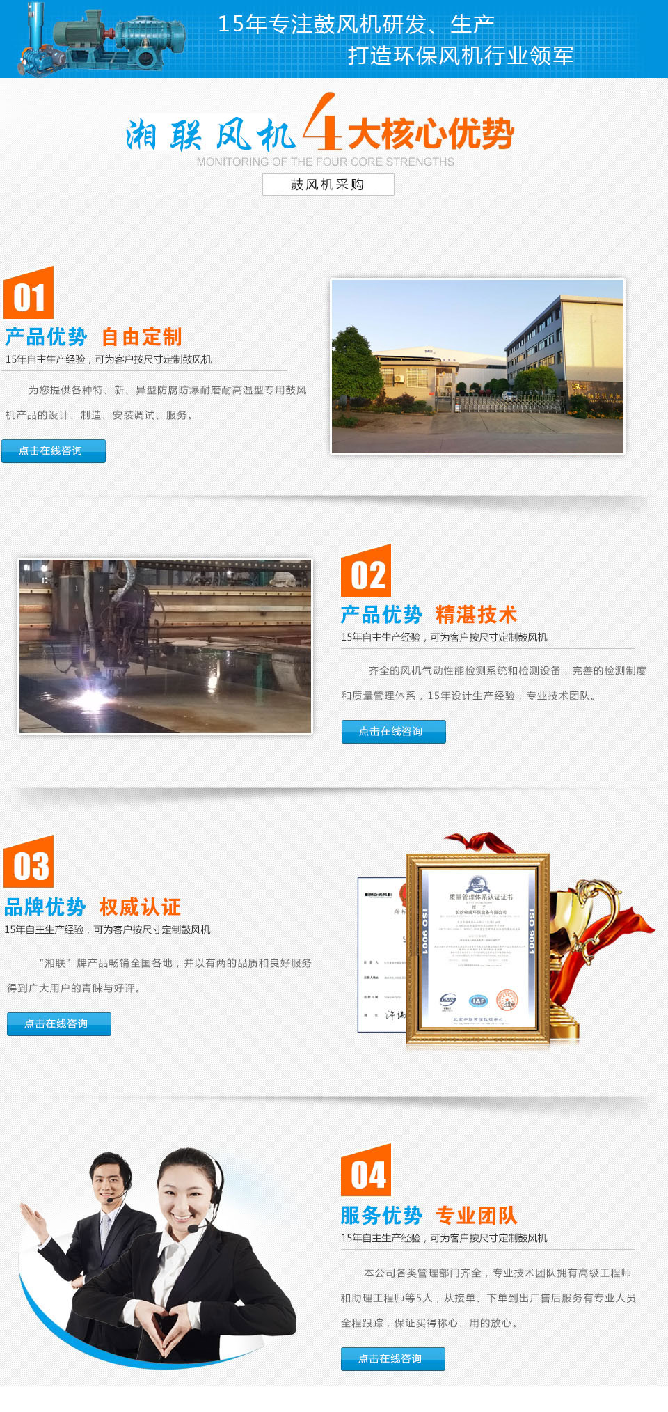 湘聯(lián)鼓風(fēng)機(jī)是一家專業(yè)設(shè)計(jì)、生產(chǎn)和銷售各類鼓風(fēng)機(jī)及通風(fēng)除塵環(huán)保設(shè)備的專業(yè)長沙鼓風(fēng)機(jī)廠。 公司占地2萬多平方,擁有各類主要加工檢測設(shè)備200余臺套。地處經(jīng)濟(jì)交通信息發(fā)達(dá)的長沙市中心鎮(zhèn)——瀏陽鎮(zhèn)頭鎮(zhèn),落戶瀏陽市環(huán)保科技示范園的高科技環(huán)保型企業(yè),是目前長沙市頗具規(guī)模、品種齊全的鼓風(fēng)機(jī)及配件制造廠家之一。 現(xiàn)已生產(chǎn)三十多個系列通用型及十多個系列特種風(fēng)機(jī),廣泛應(yīng)用于鋼鐵、冶煉、電力、化工、建材、窯爐..[更多詳情]